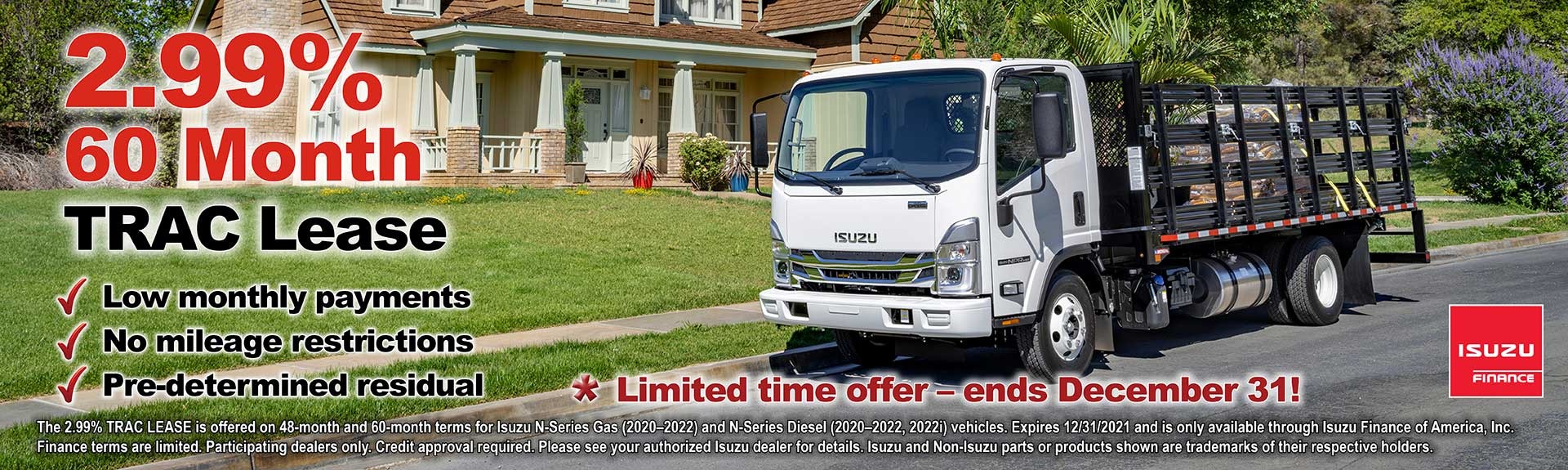 The TRAC (Terminal Rental Adjustment Clause) Lease allows flexibility based on your business needs (high-miles or heavy-use). At the end of the lease, you are responsible for the residual, but you can still lease a new Isuzu, refinance or purchase the truck for its residual value.